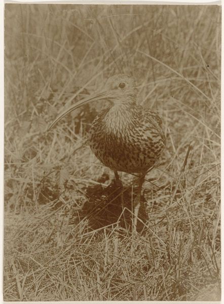Editor: Here we have Richard Tepe’s “Broedende Griel in de duinen,” a gelatin silver print created sometime between 1900 and 1930. It’s such a quiet image. What stands out to me is the bird’s stillness, how it seems completely at one with the landscape. What do you see in this piece? Curator: The image vibrates with a profound sense of place and time. The nesting bird, so vulnerable yet determined, resonates deeply. Consider the enduring symbol of the nest, across cultures and centuries, it signifies home, safety, and the promise of new life. It evokes maternal instinct, but what is being protected? Editor: Well, eggs I suppose, and then eventually the chicks, right? Curator: Indeed, but perhaps it represents something larger as well. Notice how the muted tones and textures of the gelatin silver print amplify the connection between the bird and its surroundings. The bird practically *is* the dune; its safety *is* the survival of the surrounding nature and its future chicks. Its survival depends on an ecosystem and shared sense of space. What memories, or cultural associations does this image spark within you? Editor: It’s funny, I mostly think of that saying about not disturbing a bird on its nest. Sort of that feeling of intrusion. Curator: Precisely! And isn't that a powerful statement in itself? It highlights the respect and protection that such potent symbols of growth deserve, and have come to mean in collective cultural consciousness. Editor: I hadn't considered how much symbolism could be tied into one photograph! Curator: Art often invites us to explore these layered meanings and consider our place within the broader narrative. It holds both a personal, emotional association but also the collective visual consciousness that shapes its role in culture.