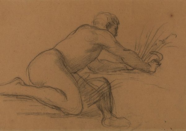 Pierre Puvis de Chavannes made this drawing, *Homme assis nu, de dos*, with charcoal on paper. Charcoal's inherent qualities, its crumbly and easily blended nature, lend themselves to a sense of atmospheric depth, almost like a hazy memory. Look closely, and you can see how de Chavannes has exploited these qualities to create a subtly modulated surface, building up tone with repeated strokes. The texture of the paper peeks through, adding to the overall impression of softness. The choice of charcoal is also significant in social terms. It’s an inexpensive material, a basic tool for artists. In this drawing, de Chavannes embraces the immediacy and directness of the medium. He seems more interested in capturing the essence of the human form, than in creating a polished, finished work. It reminds us that even within the realm of fine art, material choices and processes can carry a powerful message.