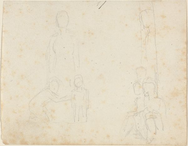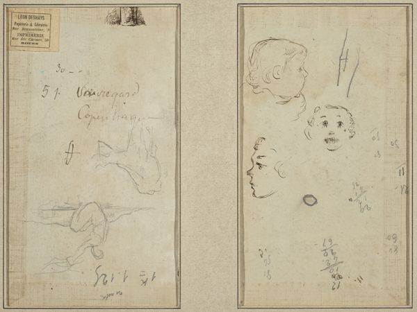 Editor: Here we have Paul Gauguin’s "Five Studies of Heads; A Boy in Profile with Studies of Hands and Feet [verso]", created sometime between 1884 and 1888, using pencil on paper. It’s so raw, isn’t it? Like catching a glimpse into his sketchbook. What do you see in it? Curator: Oh, absolutely! I see Gauguin wrestling with form, wouldn't you agree? Look at the tentative lines, almost like whispers on the paper. I imagine him sitting, perhaps observing his own children, quickly trying to capture the fleeting essence of childhood. It feels deeply personal, like a moment stolen from life itself. It almost looks like when you dream something. The world becomes undefined. And then there are the hands and feet, divorced from any particular body. Did he abandon painting the body parts on purpose or did he get interrupted in his work? What do you think about that choice? Editor: That's a cool way to look at it! So the incompleteness is intentional to better reflect life and thought processes. Curator: Incompleteness isn’t always unintentional. Sometimes the essence is enough, you know? I remember once trying to write a poem about the rain and got stuck on describing how it made me feel as a kid; but what struck me was not the falling water itself. Editor: You're right; it adds to that feeling of intimacy. Like he's inviting us into his private world of artistic exploration. I can almost feel the scratch of the pencil on the page. Curator: Exactly! And isn't that what art is all about? A shared experience, a glimpse into another's soul…or perhaps a reflection of our own. That is why for many people poetry is a world in itself. Editor: So true! I'll definitely look at sketches differently from now on.