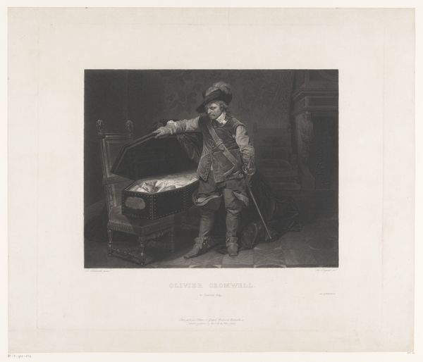 George Maile’s print depicts Oliver Cromwell gazing into the opened coffin of Charles I. A stark image of death and power. The open coffin is a powerful symbol, a motif that echoes through art history. Think of the entombment of Christ, the opened sarcophagi of ancient rulers – all images of mortality. Here, it represents not just death, but a deposition of power. Cromwell's gesture toward the body is reminiscent of a saint showing relics, yet inverted to be a symbol of earthly triumph over divine right. Consider how the skull, often featured in vanitas paintings, serves as a memento mori, a reminder of the fleeting nature of life. Cromwell’s gaze suggests more than mere victory. It’s a confrontation with mortality, and perhaps, a subconscious attempt to reconcile the weight of his actions with the inevitable fate that awaits all men. The image resonates with a deep-seated cultural anxiety about power, death, and the cyclical nature of history.