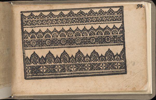 This is page 76r from *Schön newes Modelbuch*, made in the early 17th century by Sigismundus Latomus. It’s an example of an early pattern book, printed on paper with a series of designs. Look closely and you’ll see rows of intricate geometric and floral motifs, typical of the period. These weren't just abstract designs, but practical guides for artisans, particularly those involved in textile production. Embroidery, lace-making, and other needlework skills were essential for both domestic and commercial purposes. Books such as this one played a crucial role in disseminating designs and standardizing production. Consider the labor involved; the meticulous handwork required to replicate these patterns onto fabric, and the economic implications for those who depended on textile production for their livelihoods. It challenges our traditional notions about art, prompting us to recognize the artistry embedded in everyday objects and the skilled labor that brings them to life.