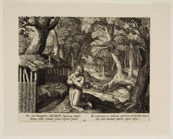 Editor: So here we have Gérard Audran's "The Lord Speaking to Moses from the Burning Bush," housed at the Harvard Art Museums. The figures are rendered so delicately, but I am curious about how the artist achieved this level of detail. What can you tell me about the process? Curator: Considering Audran was an engraver, the materiality of the metal plate itself becomes key. The labor-intensive process of carving the image into the metal, the tools used, the ink applied, and the paper all speak to the artist's skill, and reflect a certain level of artisanal production. Editor: It’s amazing to think about the handwork that went into each print! Thanks for that perspective. Curator: Indeed. And this print, distributed widely, transforms the image of divine revelation into a commodity.