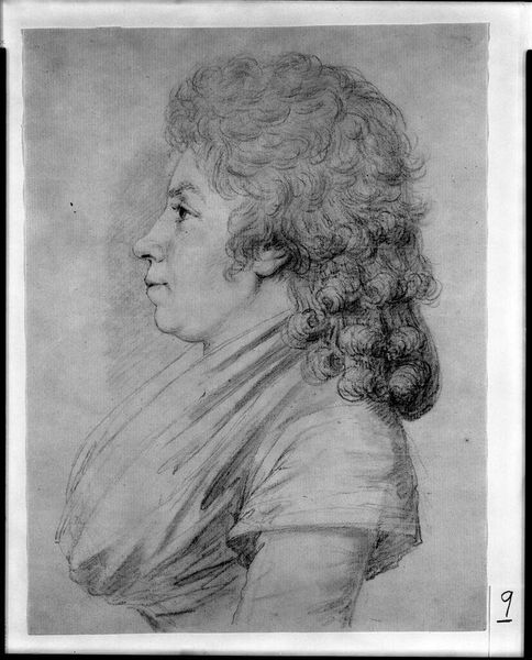 Curator: This is Adolf Ulric Wertmüller’s portrait of Louisa Frederika Pauli, née Wertmüller. It measures just over 22 centimeters in height. Editor: It’s a strikingly intimate portrayal. The soft graphite lends a gentleness to her features, almost like a memory captured on paper. Curator: The profile view was a popular choice in portraiture, especially during the Enlightenment. It allowed for a focus on physiognomy, then seen as a signifier of character. Editor: And look at her elaborate hairstyle! It speaks volumes about the social expectations placed on women of her station, the performance of beauty as a public duty. Curator: Indeed, the curls and the drape of her clothing become symbolic of status and perhaps even aspiration. Editor: Seeing it now, I feel that these images reveal a lot about the construction of identity in the past. Curator: A brief glimpse into a world both familiar and distant.