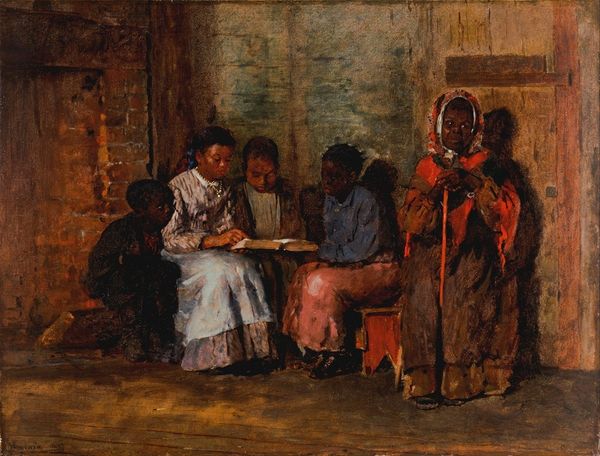 Theophrastos Triantafyllidis painted these "Youths Enjoying Themselves in Galatsi" with oil on canvas, but the real story here is the brushwork. It's broken and impressionistic, which gives everything a kind of shimmering energy. I love how the earthy colors create a sense of warmth and intimacy. Looking closely, you see how the paint is applied in these small, deliberate strokes. Check out the way he renders the light filtering through the trees. Those touches of white and pale yellow aren't just about capturing light, they're about building form, creating a sense of depth and atmosphere. The more you look the more you realize that the canvas is alive with all these little marks. Triantafyllidis's paintings have an affinity with the slightly later work of Giorgio Morandi. Like Morandi, he took a domestic approach, painting the everyday world in a way that prompts reflection. What is going on? Who are these youths? Enjoying themselves, for sure, but with more than a touch of melancholy. Art is always a conversation, never a conclusion.