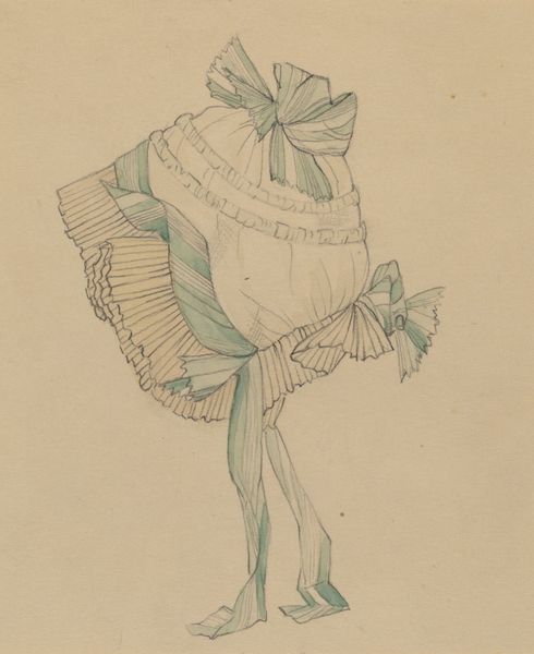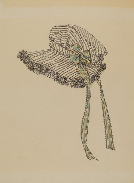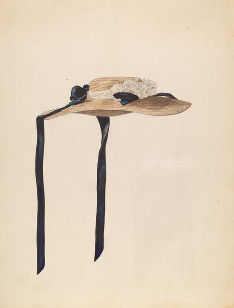 Frank Nelson created this watercolor and graphite Bonnet. Nelson lived in a time when fashion began to reflect new social roles for women. The bonnet, a traditional symbol of feminine modesty and domesticity, here is reimagined. The straw bonnet is adorned with vibrant, plaid ribbons and stands in contrast to the somber, black ribbons. This piece perhaps seeks to capture the complex intersection of tradition and modernity in women's lives. Nelson’s delicate lines capture a sense of both constraint and freedom, hinting at the contradictions inherent in societal expectations of women. The bonnet, once a symbol of conformity, is transformed into an object of subtle rebellion, echoing the quiet revolutions happening in women's lives during that era. The work resonates with the push and pull between personal expression and social norms.