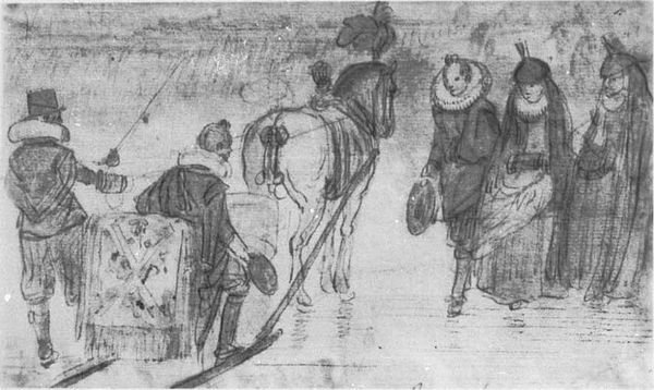 Hendrick Avercamp sketched "A Fishwife in a Boat Submerging Two Fish Baskets" using pen and brown ink, offering us a glimpse into the lives of working-class women in the 17th-century Netherlands. Avercamp, known for his winter scenes, often included ordinary people in his art. Here, the fishwife, likely a common sight in Dutch waterways, becomes the focal point. Her labor, a traditionally female role, highlights the gendered division of work. The sketch captures the immediacy and physicality of her task. Avercamp does not necessarily glorify the toil, but neither does he shy away from depicting the everyday realities faced by women supporting themselves through the fishing trade. The simplicity of the drawing underscores the directness and necessity of her work, challenging conventional representations of women from this time period. This humble sketch, therefore, becomes a poignant document of a life lived close to the water, laboring for survival, and quietly resisting the more typical narratives of women at the time.