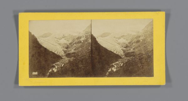 Editor: Here we have Knud Knudsen's "Waterval nabij Odda aan de Hardangerfjord, Noorwegen", which roughly translates to Waterfall near Odda on the Hardangerfjord, Norway. It's an albumen print that appears to date from sometime between 1861 and 1870. It strikes me as incredibly composed, a very formal, almost symmetrical framing of wild nature. How would you interpret this work? Curator: A question of visual syntax. Note the photograph's binary structure, divided cleanly into two stereo images. The waterfalls mimic each other. On the lower left and right are constructed dwellings which appear similar. What effect is achieved from this organization? Editor: I suppose it's trying to tame this sublime force of nature, water falling off a cliff. I do see a kind of repetition that creates a familiar, comforting aesthetic. But then why choose such a grandiose subject in the first place? Curator: Grandiose, but observe Knudsen’s focus on tonality and texture. The meticulous rendering of the waterfall's cascading form. He contrasts the geometric cabin, to the softer foliage. Consider this early form of photography, which is being used to document this landscape in a seemingly "objective" manner, what we'd now consider artifice? Editor: Is the appeal here, then, less about pure representation, and more about... form? The contrasting forms of water and log cabins? Curator: Precisely! Note how the composition guides the eye. It's almost as if the photograph self-reflexively reveals the components used to portray it, simultaneously demonstrating its form and formation. An ontological question, perhaps, posed through photographic form? Editor: This work asks how the way an image is put together defines its effect? That's amazing. Now I'm wondering if I see that intent throughout the Romantic landscapes from the 1800s. Curator: Yes, consider that now as you continue to explore images during the Romantic period!