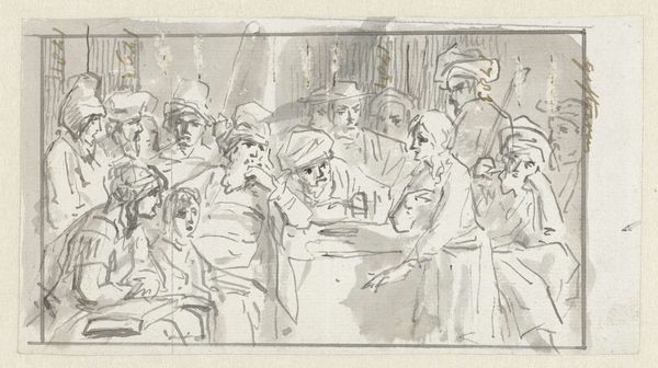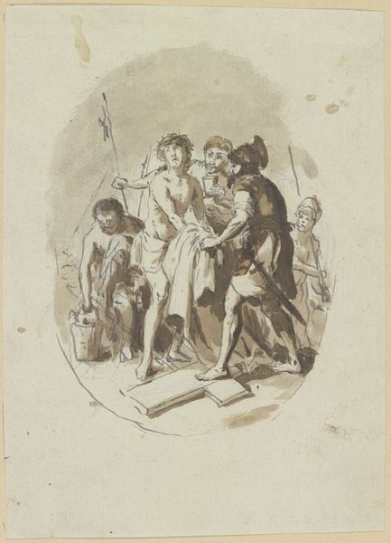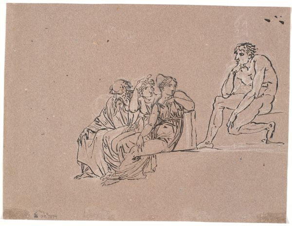 Jean-Baptiste Greuze created this ink drawing, now at the Städel Museum, using washes in shades of grey and brown. The figures are grouped closely together, their forms defined by bold, fluid lines and tonal contrasts that create a sense of drama. Look at how Greuze manipulates light and shadow to direct our eyes to the dead deer and the figures surrounding it. The composition invites us to interpret the scene through its visual dynamics. We see the men struggling with the deer, their faces etched with concern. The urgency suggested by their gestures, combined with the static form of the deer, creates tension. A child looks upward, adding an element of innocence to the composition. The drawing explores themes of mortality and human action. Greuze uses the materiality of ink to create a visually compelling exploration of the relationship between humans and nature. The drawing leaves us to reflect on the meanings we project onto such scenes.