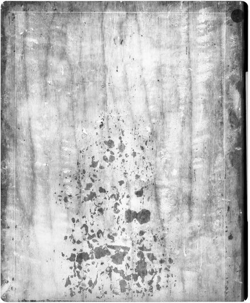 Curator: This is an X-radiograph of "Virgin in Church," its maker remains anonymous. The image has a spectral quality to it. What strikes you first? Editor: The decay. It feels like viewing a forgotten memory ravaged by time, yet with the faintest trace of the sacred remaining. Curator: Indeed, it highlights the processes of deterioration, but also reveals hidden aspects of the painting's construction. It makes you consider what it has been through. Editor: It reminds us that even religious iconography is subject to the forces of history. How these images are used, abused, and discarded speaks volumes about cultural shifts. Curator: The medium itself, the X-ray, introduces a contemporary lens through which we engage with historical and cultural artifacts. Editor: It's a haunting reminder that art endures, but also transforms, shaped by both intentional acts and the indifferent passage of time. Curator: Quite so, a poignant meditation on art, memory, and the enduring power of symbols. Editor: A powerful reminder that even in decay, there is a story to be unearthed.