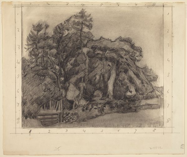 Curator: This is “Putbus on Rügen,” a pencil drawing done on paper by Emil Rudolf Weiss around 1906. Editor: It feels dreamlike, doesn't it? That hazy rendering creates this atmosphere of quiet contemplation. It almost feels like peering into a memory. Curator: Weiss was very active in the German art scene. The shift from late 19th century stylistic tendencies to early expressionism informed how artists began to grapple with modern society. What you see in the foreground with this very defined architecture, that blends effortlessly into the unkemptness of nature. Editor: Absolutely. The dominating pine trees feel almost like silent observers overlooking a civilized space. Pine trees often carry the weight of memory and longing in visual symbolism. It is such a prominent feature, drawing one into a deeper consideration. What about its context made this symbolism particularly poignant? Curator: Well, beyond being a stunning nature scene, the isle of Rügen has enjoyed many political lives in German history, passing into the hands of different powers. And beyond a place of conflict, it grew into a destination for German tourists. So the pine, here, could almost be symbolic of place, community, and connection within the quickly-shifting social and political identity of early 20th century Germany. Editor: That makes a lot of sense. So many interpretations are swirling around in my head, considering these possible angles and contexts. Curator: That's the beauty of the piece, isn't it? Its ambiguity lets the viewer engage with these many concepts and possibilities within German life and German Expressionism, even today. Editor: A wonderful encounter. It certainly opens a door for greater historical thought.