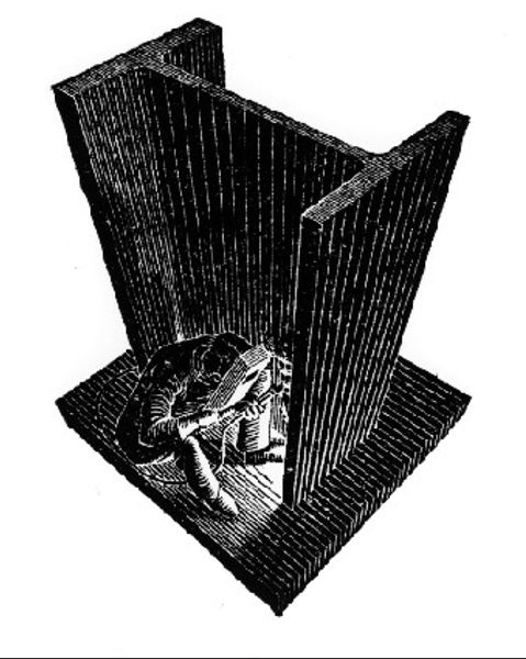 Editor: We are looking at Sorin Dumitrescu's "Illustration for Nichita Stanescu's Epica Magna," created in 1978. It appears to be a graphite or pencil drawing. The first thing that strikes me is the tension between the defined geometric shape, and the chaotic lines contained within. What are your thoughts on this work? Curator: This piece is a potent example of how process reveals meaning. Look at the repetitive labor, the very act of layering those pencil strokes to build form. It’s a physical engagement. I see here the means of artistic production on full display, challenging our notions of skill and intention. Editor: It definitely emphasizes the material. The contrast between the solid cube and the tangled lines is so stark. Does that have to do with its historical background? Curator: In a way, yes. Consider the political context of 1978 Romania, under communist rule. Artists often had to operate within constraints, subverting expectations through abstraction. How do we interpret the "geometric" intersecting "lines" meeting the “lips”, and consider the significance of "form"? Editor: The drawing feels like it’s rebelling against some kind of order, with such intricate mark making. It feels like it emphasizes consumption because its a drawing used as a medium, however, there seems to be layers of symbolism. Curator: Precisely! Dumitrescu takes the simplest materials—pencil, paper—and elevates them. Where some artists might focus on the grand statement, Dumitrescu foregrounds the act of making itself. Is he also subtly criticizing prescribed ideologies? Editor: So it becomes about more than just what we see; it's about the act of creation and its circumstances. It’s interesting to me that through the material and process we are led to its meaning and relevance. Curator: And how materials in that period might shape not just how art looked, but what it said, too. Thank you for providing clarity to its deeper symbolic purposes.