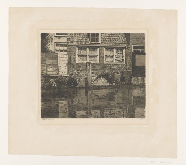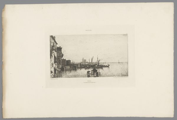 Editor: We’re looking at Charles Adams Platt's "Shanties on the Harlem," made around 1881 or 1882. It's an etching, and it has this hazy, almost dreamlike quality. It feels quiet, even a bit melancholic. What strikes you when you look at this piece? Curator: It speaks to the evolving role of the artist in the late 19th century. The choice of subject matter—humble dwellings, the working waterfront—reflects a shift away from idealized landscapes and towards a focus on everyday life. Why depict the "shanties" instead of grand mansions? It suggests a deliberate engagement with the social realities of the time, a nascent interest in documenting urban development and its effects on ordinary people. Editor: So, you see it as a kind of social commentary? Curator: Partially, but also an aesthetic statement. The etching medium itself facilitated wider distribution, making art more accessible. Platt, who later became a renowned landscape architect, captures a transient moment in Harlem’s history, when rural life intersected with burgeoning urbanity. The image exists not merely as documentation, but as art, raising questions of the political function of art within society. Consider how the work contrasts with other depictions of Harlem during this period, like celebratory portrayals, or total omission. Editor: That's interesting, it's like the choice to focus on these simple buildings is a statement in itself, especially considering the potential for romanticizing the area. Curator: Precisely. The shanties become a potent symbol when contextualized within broader socio-economic and political currents. And how the art is later received becomes equally part of its evolving history. Editor: I hadn’t thought about the social context that deeply before, thanks for making me consider art’s purpose within its history. Curator: My pleasure. I was overlooking the emotional impact the choice to present ordinary structures creates, so thanks to you as well!