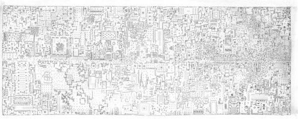 Editor: This is León Ferrari’s "Neighbourhood," undated, housed at the Tate. It's a complex aerial view of a city, meticulously rendered. It feels almost unsettling, like a maze designed for control. What do you make of it? Curator: It’s a powerful visual statement. Given Ferrari’s history of critiquing political power and oppression in Argentina, consider this "Neighbourhood" as a commentary on urban planning and social control. Editor: So, the maze-like structure isn't just aesthetic? Curator: Precisely. Think about how urban spaces can dictate movement, restrict access, and reinforce social hierarchies. How does Ferrari use the bird's-eye view to possibly implicate those in power? Editor: It gives a sense of surveillance, of constant oversight. I never thought of urban planning as a form of control. Curator: Ferrari invites us to consider architecture and urban design as extensions of power structures. The personal is political, but so is the pavement beneath our feet. Editor: Wow, I'll never look at a city map the same way again. Curator: Indeed. Art can be a powerful tool for questioning the spaces we inhabit and the forces that shape them.