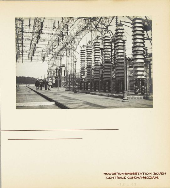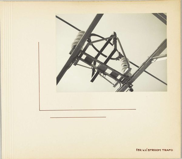 Curator: Here we have Wouter Cool's photograph from 1936, titled "Detail van een energiecentrale op onbekende locatie in de Verenigde Staten" — a detail of a power plant, taken in the United States. It's quite a striking image, don't you think? Editor: Yes, it’s very imposing. Almost architectural, with a stark, geometric quality. The high-angle perspective and monochromatic palette give it a slightly unsettling mood, an inhuman feel. Curator: Precisely! The angle definitely emphasizes the scale of the industrial structures. We can clearly discern Cool's use of precisionist aesthetics here. You can see how modernism's love for geometric forms finds a particular expression in depictions of industry. Editor: The lines, the towering steel frames…it definitely evokes a sense of modernity and the machine age. The high-tension wires cutting across the sky almost feel like an imposition on the natural world, you can tell this image intends to celebrate progress and industrial might. But it can also spark a reflection on the environmental cost of that kind of progress. Curator: I agree. The photograph can easily be interpreted in contrasting ways. This subject matter also mirrors similar visual themes found in interwar paintings that valorized the machine aesthetic. Editor: Yes! The photographer, however, removes brushstrokes and thus romantic notions. The absence of people and the strict geometry make the whole place impersonal and almost dehumanized. Curator: But isn't that dehumanization central to the aesthetic vision that sought purity in form, a reduction of reality to essential shapes? In a way, Cool almost transforms it into an abstract composition of geometric patterns and light. It is visually enticing and somewhat disturbing. It is a curious record. Editor: And in doing so, he captures the complex anxieties of the age—the simultaneous awe and unease about the burgeoning industrial world that continue to this day. A true product of its moment, and perhaps our own. Curator: Indeed. A lasting and stark symbol of an era grappling with progress and its implications.