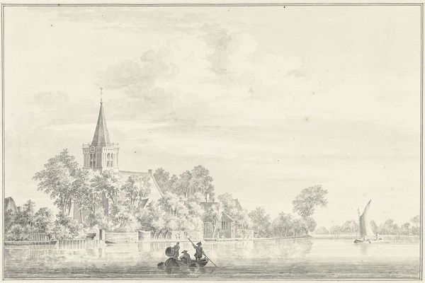 Editor: Here we have Jan Lievens' "View of a Village," housed right here at Harvard Art Museums. It's a delicate landscape sketch, feels almost dreamlike. What catches your eye when you look at it? Curator: It feels deeply personal, doesn’t it? Like a half-remembered place, seen through a veil. I’m drawn to how Lievens uses the reed pen to create such a sense of depth with so few lines. Notice how the church spire barely peeks through the trees. Is it a memory, a wish, or maybe just a quiet observation? Editor: A bit of all three, perhaps? It definitely invites contemplation, doesn't it? Curator: Absolutely. For me, it's a reminder that sometimes the simplest images hold the greatest mysteries. What about you? What will you remember after seeing this sketch?
