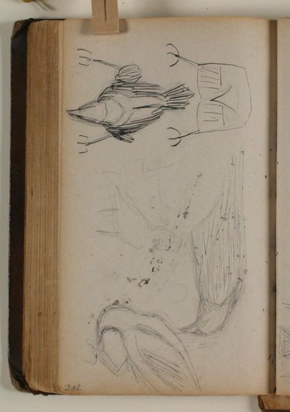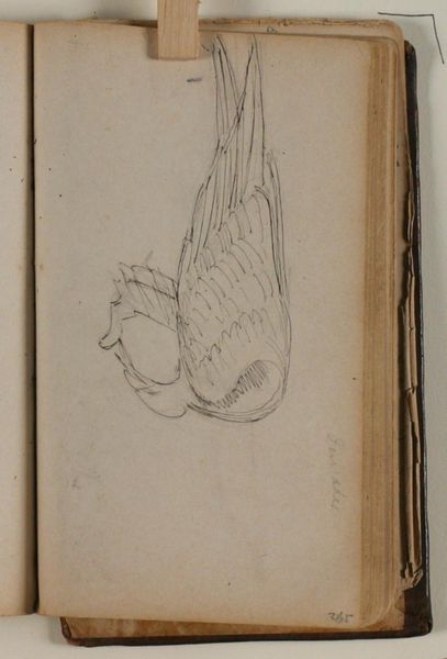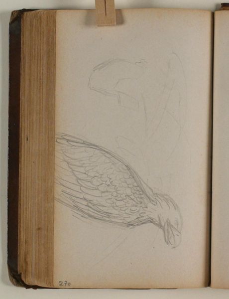 Curator: We are looking at "Study of a Griffon, Seen From Behind" by Niels Larsen Stevns, created sometime between 1864 and 1941. It's a pencil drawing on paper currently held here at the SMK. Editor: It has such energy, despite being a sketch! The immediacy of the lines really captures a sense of movement; you can almost feel the bird taking flight, wings outstretched. Curator: Exactly. Look closely at the pencil work – the variations in line weight and the areas of shading. It’s not just a representation of a griffin, it's a study in form. You see the musculature suggested through the layering and direction of the lines. It feels very structural, in its way. Editor: I'm also considering the labor that went into producing the drawing, not only by Niels Larsen Stevns, but also the pencil maker and the paper mill workers involved in making the medium itself. What do we know of how Niels Larson Stevns acquired these materials? Curator: It is definitely essential to look at the whole structure. Focusing on the form here can, however, give us valuable information. Considering how the image's design interacts with its structure in the form. We understand it’s a quick sketch. But what purpose was that material serving for the artist? The rapid execution also gives this feeling. Editor: Perhaps this was also the process, or rather his attempt to master a creature's form in flight? It can give valuable insight into Stevns' art education and its values. Curator: Very much! Thinking more of form. What are the qualities within this artistic structure. Thinking less about paper, and pencil, which also matter and the history. More the raw execution, expression in action and its context for Stevns and his work. The piece is quite a study on its own. Editor: I find it enriching to see how many layers were within that drawing. Curator: Truly. And what an enlightening experience to explore them with you!