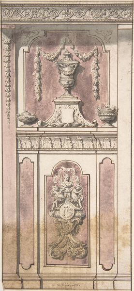 Giuseppe Barberis created this monochromatic print of the "Mausoleo Di S. Ansovino Nella Cattedrale" using engraving techniques. The print meticulously captures the mausoleum's multi-tiered structure, ornate columns, and figures, all rendered in contrasting shades that suggest depth and texture. Barberis's close attention to line work and detailing transforms the stone sculpture into a study of architectural form and surface. The composition is clearly divided into horizontal registers, each densely packed with semiotic elements drawn from Christian iconography and classical motifs. This reflects the cultural codes and belief systems the mausoleum was created to convey, inviting viewers to engage with its symbolic language. The artist creates a dialogue between aesthetic representation and cultural meaning that remains open to interpretation.