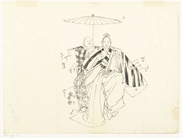 Curator: Aubrey Beardsley created this piece, "The New Star," with ink on paper. It's currently held at the Harvard Art Museums. Editor: I'm struck by the contrast - the figure is weighted down by these dense, dark forms, yet strives toward something radiant and new. Curator: Beardsley often worked with stark black and white to create striking images, rich in symbolism. The star, of course, is a universal symbol of hope and guidance. Editor: Look at the printing though - such control with the line, the gradation, it speaks to a craftsman's meticulous labor and the value of the handmade in a time of increasing industrialization. Curator: Absolutely. Beardsley was deeply interested in mythology, religion, and the occult. This figure, obscured by extravagant attire, reaches toward a higher power. Perhaps it’s a comment on the individual's relationship with the divine. Editor: Or perhaps it is about the materials used to create the garment. The figure is obscured, but the garment is the star, literally in this image. Curator: A compelling reading. Editor: Indeed, thinking about the process and materials opens up a completely new perspective on the figure's quest.