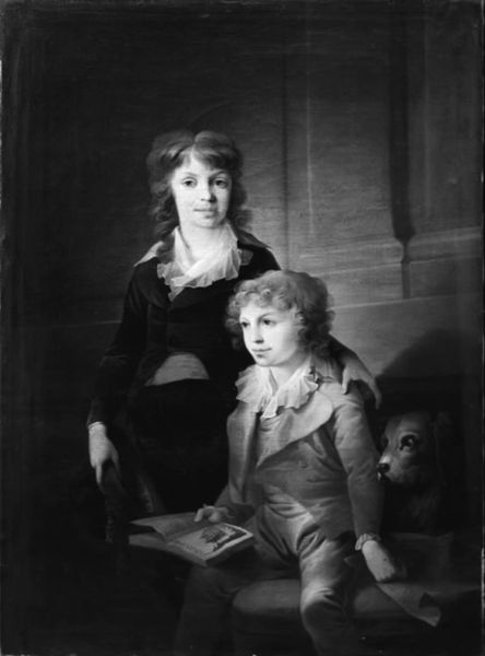 N.P. Holbech painted this oil on canvas portrait of Miss Niedlich and Mrs. Schmidt sometime in the mid-19th century. At a time when women’s roles were largely confined to the domestic sphere, portraiture offered a means of asserting identity and status. Here, we see both figures formally posed, their attire and demeanor suggesting a comfortable middle-class existence. The gaze of the adults directs us, but it’s the child’s touch that provides a point of emotional resonance. The hand on her mother's shoulder is tender, intimate and perhaps a little possessive. The identity of the child is also ambiguous, and this visual tension prompts contemplation about gender roles and expectations. Does this child, dressed in what appears to be a dress, express or confront normative gender expressions? The painting invites us to consider the representation of women and children in art, and how these depictions reflect broader societal attitudes and values. It encourages a dialogue about identity, representation, and the personal narratives embedded within historical contexts.