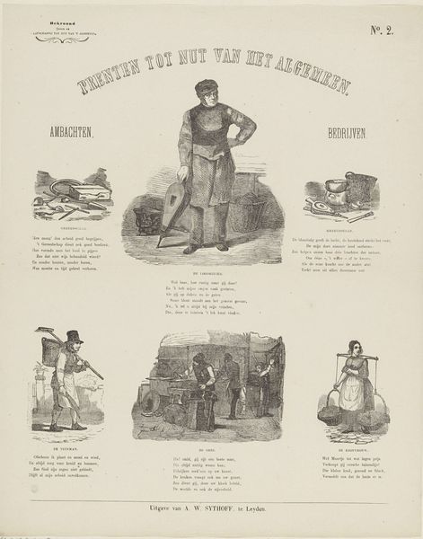 This lithograph, crafted by Albertus Willem Sijthoff, presents archetypes of labor. Note the smith, hammering with primal force, evoking the ancient god Vulcan, whose forge shaped not only tools but also myths. Consider the image of the spinner; her spindle is not merely an instrument but a thread connecting her to fates like Clotho, Lachesis, and Atropos, weavers of destiny in the classical world. This act of spinning—of creating—mirrors the very act of artistic creation. The night watchman with his lantern, a motif seen in the darkest corners of Rembrandt’s paintings. He's the guardian against the night, and his presence is a recurring figure across cultures, embodying protection, vigilance, but also the fear of the unknown lurking in the dark. These archetypes persist, subtly shifting across epochs.