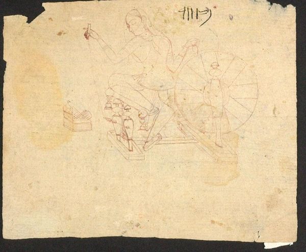 Editor: So, this is Tintoretto's "Angel Seated on Clouds Playing a Harp," it's a drawing. It feels almost ephemeral, like a fleeting vision. What do you see in this piece? Curator: I see a figure defying expectations. The androgynous angel, perched precariously, challenges the very notion of celestial harmony. How does Tintoretto's Venice – a city grappling with its own mortality – inform our understanding of this angel's role? Editor: I hadn't thought about Venice in that way. It does seem to introduce an element of precarity and perhaps even vulnerability to what I thought was purely an image of otherworldly perfection. Curator: Precisely! Tintoretto’s genius lies in unsettling binaries. This drawing prompts us to question idealized representations of power and consider the socio-political forces that shape our perceptions. Editor: I'm now seeing how this drawing can speak to themes of fragility and resilience. Thanks for pointing that out.