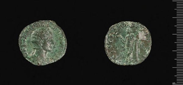 Editor: So, this is a coin of Perge, minted under Diadumenian. It feels… humble, somehow, despite being currency. What story does a little thing like this tell us? Curator: It speaks volumes! Think about who controlled the imagery on currency. It was a direct line to shaping public perception of power. A coin isn't just money; it's propaganda writ small. How do you think that impacted people’s understanding of Roman rule? Editor: I guess it was a constant, tangible reminder. Almost like a tiny, everyday advertisement for the emperor. Thanks, that's helpful! Curator: Exactly! And considering its journey through time and into a museum, we can consider how its value has shifted.