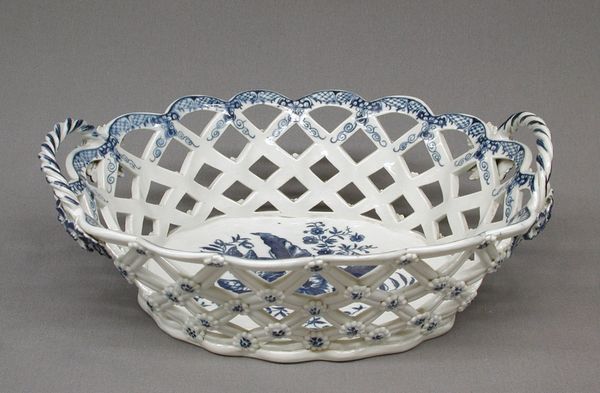 Curator: This diminutive ceramic, dating from around 1833 to 1853, is listed as a pickle dish made by William Ridgeway Son & Co. Editor: It's delightful, really. The scallop form and crisp blue and white palette gives it a light, almost breezy quality. Curator: Precisely, the shell form is structurally important. Observe how the radiating flutes not only delineate space but also serve as channels that draw the eye towards the central image. Editor: That central image feels distinctly picturesque. The kind of idealized landscape a burgeoning middle class would find extremely attractive in the mid-19th century, wouldn’t you agree? I can imagine this little dish gracing a table in a comfortable suburban home. Curator: Yes, its evocation of nature is critical to understanding it. Consider the contrast between the delicate cobalt watercolor transferred onto the pure white ceramic body and the textured rendering of foliage and water; that tension underscores its artificiality. Editor: In what way is it artificial? Curator: In the way that a pastoral scene is carefully arranged and reproduced for mass consumption, transforming a simple object into a signifier of cultured domesticity. What kind of political narrative can we weave into its popularity? Editor: Oh, that’s too serious! While it represents the commodification of beauty, can we not first embrace its whimsical nature? It elevates everyday rituals with a hint of refined sensibility and an aesthetic sensibility that resonates to our current longing for natural order and delicate refinement. Curator: But if we refuse to analyze this sensibility, do we risk replicating the same socio-economic values inherent in the culture of the time? The form reflects the taste of the society, with some wealth but without aristocracy background. It is critical to know what audience embraced this style. Editor: A very interesting dish indeed, whether enjoyed on purely aesthetic terms or analyzed through the lens of social history.