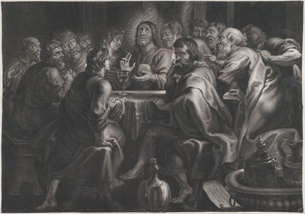 Giulio Cesare Procaccini painted this ‘Ultima Cena’ using oil paint on canvas, a familiar pairing for artists of his era. However, let’s consider the materiality of this painting. The rough weave of the canvas, no doubt prepared by an artisan, provides a robust ground for the composition. Oil paint, made from pigment suspended in oil, allows for the rich colors and subtle gradations of light and shadow that bring this scene to life. Procaccini’s application of the paint, built up in layers over time, speaks to the labor involved in its production. While not overtly political, paintings like these are reminders of the economic systems at play, where artists relied on the patronage of wealthy clients. The precious pigments and painstaking process reflect not only artistic skill, but also the social context in which the painting was made. By attending to the materials and making of art, we can gain a deeper understanding of its cultural significance, moving beyond conventional distinctions between art and craft.