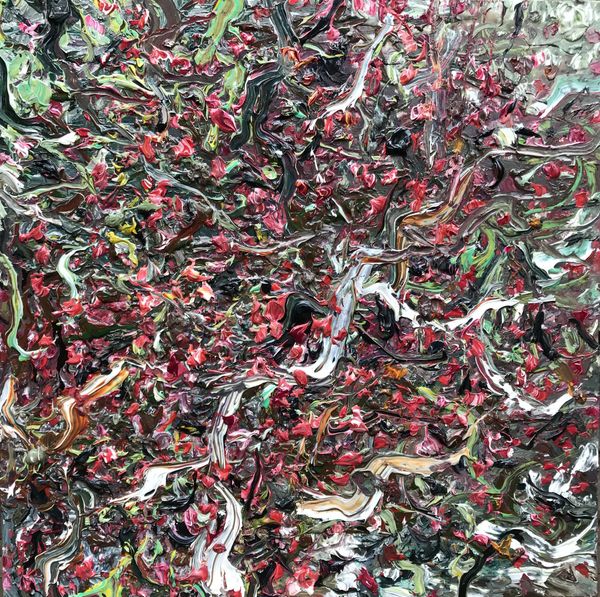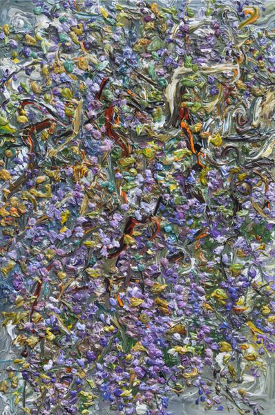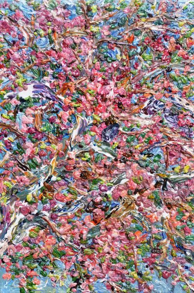 王新福 made this painting, 粉紫色的樱花树, out of what looks like pure texture. The paint is applied in such thick dabs and strokes that the surface becomes a topographical map, a relief, almost like frosting on a cake. The pinks and purples are joyful, and there's a real sense of movement that reminds me how flowers themselves are in constant flux, responding to light and wind. Look closely, and you'll see these little peaks and valleys of paint, each holding its own tiny shadow. The artist's hand is so present; you can almost feel the energy of the brushstrokes as they built up this image. It's a painting that embraces the messiness of nature and the joyful struggle of trying to capture it on canvas. You could compare it to Van Gogh in that way, but really Wang Xinfu is doing his own thing. Art is a conversation, not an echo!
