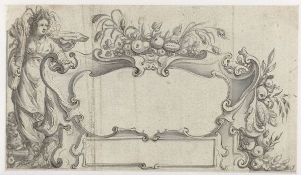 Editor: Here we have an engraving from somewhere between 1594 and 1635, entitled "Kom met een tros vruchten tussen twee voluten die uitlopen in vogelkoppen," which translates to "Come with a bunch of fruit between two volutes that end in bird heads." It's anonymous and showcases a very intricate design with faces, fruit, and, indeed, bird heads. It has a very balanced but also overwhelming presence due to the great detail and symmetric pattern. What is your perspective on this image? Curator: What I see here is not simply an image, but a record of skilled labor, and it begs the question: for whom was this produced, and at what cost? This print, seemingly intended as a pattern for other crafts, such as furniture making, underscores a shift in production. Was this artisan producing for individual wealthy patrons, or for broader distribution in the marketplace? Note the intricate detail. Think about the time invested and then how these things affect artistic creation and, beyond that, artistic accessibility. Editor: So you’re focusing on the economics behind it? The manual process to make art accessible through a printed image? Curator: Exactly. The "how" and "why" something was made informs the “what.” This print facilitated a dissemination of style. But let's think about who controlled that dissemination. Who could afford the initial investment in the copperplate, and how did that dictate the image's reach and reception? The use of this style will vary depending on who is using this art piece. Is it going to be displayed in a church or in someone's home? This all changes its message. Editor: That's interesting, it reframes my understanding of what prints are meant to do, focusing on accessibility in art as distribution to broader populations for application, but still within constraints based on those with power and access. I never would have noticed that at first glance. Thank you for highlighting that perspective. Curator: Likewise, thinking through the economic and labor elements certainly informs my perspective as well!