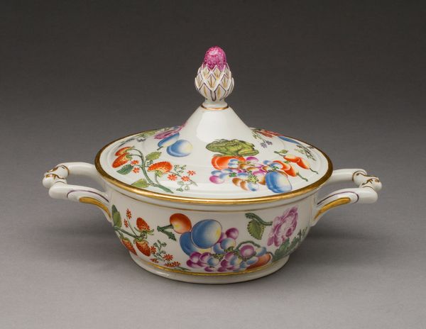 Here, we have a covered dish with an attached stand, crafted from porcelain by the Frankenthal Manufactory. Dishes like this one reflect 18th-century European society, where the aristocracy used decorative objects to assert their power and social standing. Porcelain became a symbol of luxury and refinement, a response to, and a reflection of an increasingly globalized economy where materials and styles were exchanged on a global scale. Consider how gender roles may have been reflected in its use. Was it primarily for women to serve and partake in refreshments? The delicate floral decorations certainly evoke feminine ideals of beauty and nature. Such an object invites us to reflect on our contemporary relationship to food, class, and identity. Do we still use such refined objects to mark social status, or have our rituals changed? Consider the emotional implications of using or simply observing such a carefully crafted dish.
