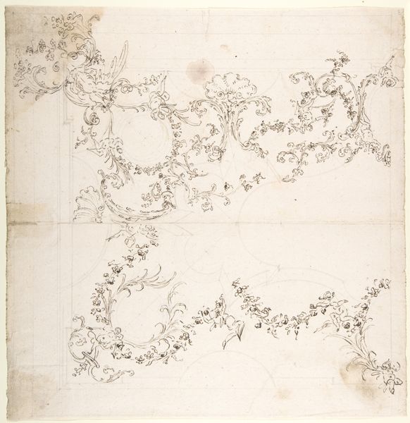 Etienne Claude Voysard created this monogram using etching techniques sometime between 1776 and 1812. During this period, Europe's aristocratic societies used personalized monograms to signify lineage, taste, and social standing. The intertwined floral and ribbon design elegantly merges nature with symbols of refinement. In the 18th century, these decorative symbols played a crucial role in constructing and communicating one's identity, especially within elite circles. Voysard, as an engraver, catered to these needs, crafting symbols that served as emblems of personal and familial pride. While this particular monogram represents a specific individual or family, it also speaks to broader themes of identity. It suggests an emotional connection through the beauty and delicacy of its floral elements and speaks to the desire to create a lasting personal legacy. It reflects the societal values of the time.