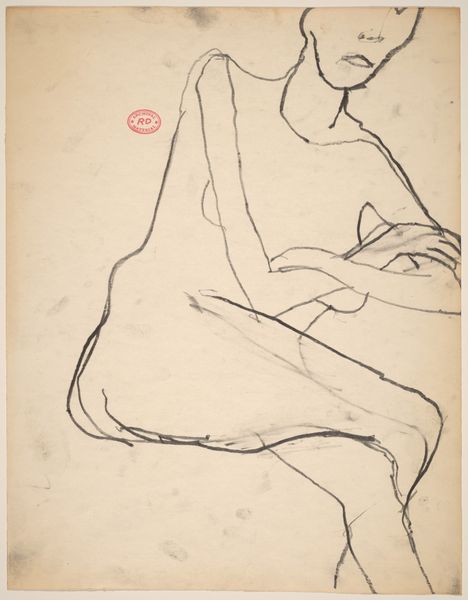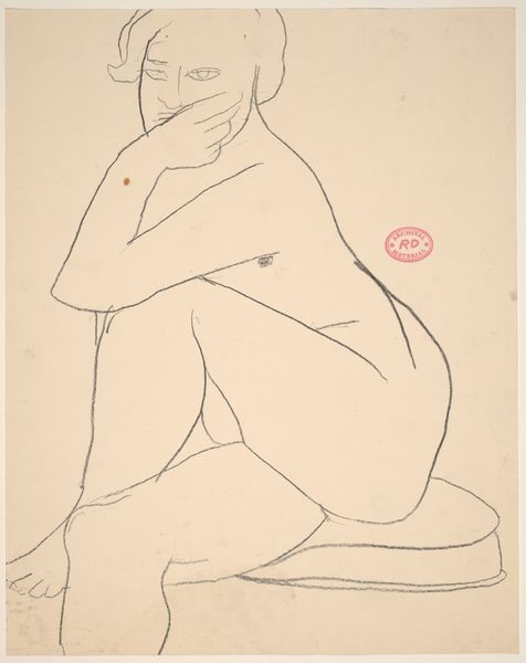 Curator: Immediately, I see this work as possessing a quiet pensiveness. The limited use of line seems to distill the subject to her most essential form. Editor: Here we have an untitled pencil drawing by Richard Diebenkorn, likely created sometime between 1955 and 1967. The piece features a seated female nude, rendered in the artist's characteristic, almost sparse, linework. Curator: I’m drawn to how the gaze is directed off to the side, away from us. I wonder about the social constructs and pressures this figure might face. Is she actively challenging the male gaze that has dominated art history for so long, reclaiming a space for herself? Editor: That's a really interesting interpretation. In the context of Diebenkorn's work, especially during that period, it could also be read as an extension of his broader exploration of form and space. He was heavily influenced by Matisse. One wonders to what extent we are seeing that play with interior and exterior reflected through his model. Curator: And, it’s crucial to question how her body is represented, particularly concerning historical objectification within the nude genre. Is this just another iteration of the passive female form or can we see subtle cues toward her subjectivity and agency? I read the slight tension in her posture as the latter. Editor: Considering the broader artistic landscape of the mid-20th century, we might view Diebenkorn's work in dialogue with Abstract Expressionism. The artist is embracing figuration rather than shying away from it, at a time when abstract expressionism was a hegemonic influence. We can ask how Diebenkorn subverts or complies with the prevailing trend? Curator: It’s also important to ask questions about access and representation. Who had access to this image then, and who has access now, and how might this impact interpretation. Is there a disparity, given the historical, and social setting in which it was produced and the present moment? Editor: Ultimately, for me, this work encourages considering the ways social and artistic environments have been impacted through time and how those impact influence both its production and continued interpretation. Curator: Yes, allowing for open questions about representation, context, and impact invites engagement beyond its visual appearance. It underscores art as a space for broader conversations on intersectional social concerns, power dynamics and change.