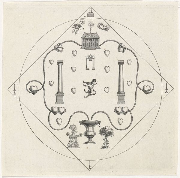 Oleksandr Aksinin created this artwork, "PF 1981. Mandala," using etching techniques, resulting in a densely detailed, monochromatic print. The composition, dominated by concentric circles and intricate patterns, immediately draws the eye into its complex structure. The careful arrangement of symbols and geometric shapes creates a mesmerizing visual experience. Aksinin's skillful use of line and texture builds layers of meaning, prompting reflection on the interplay between order and chaos. The mandala form, traditionally a symbol of the universe and spiritual wholeness, is here reinterpreted through a lens of personal and cultural symbolism. Each quadrant contains unique motifs, from alchemical symbols to numerical sequences, forming a semiotic system that invites decoding. This dense layering challenges fixed interpretations, suggesting instead an open-ended exploration of knowledge. The work destabilizes conventional categories of representation, blending mystical and rational elements. The interplay of form and content encourages a deeper questioning of meaning itself.