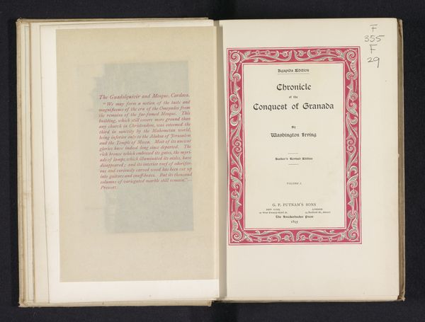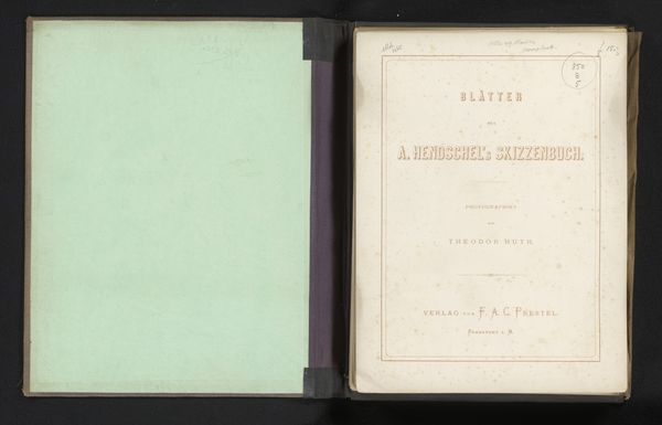 Editor: This graphic art print, titled "Album: verzameling van afbeeldingen der merkwaardigste voorwerpen, ingezonden voor de tentoonstelling van oudheden, gehouden te Delft, in Julij en Augustus 1863," created in 1863 by H.C. Rogge, has a somewhat official look, due to the stylized typography. What strikes you when you look at this cover page? Curator: The lettering and decorative framing elements suggest a conscious attempt to link the *idea* of an album with the historical weight of the items it documents. Note the hand-drawn typeface and script typography—they create a fascinating tension. How does this tension speak to the role of visual display for objects deemed worthy of exhibition? Editor: So the artist isn't just presenting information; they're also creating a particular *feeling* about history and objects? Curator: Precisely! Consider the elaborate borders surrounding the text; they borrow from classical motifs but are rendered with a distinct 19th-century sensibility. It's about invoking a sense of established tradition, giving these ‘oudheden’ – or antiquities - an almost mythic significance. What purpose might that serve for the viewer of the time? Editor: Perhaps it was a way to legitimize the importance of the exhibition and the objects displayed. Curator: Exactly. It's about constructing a visual narrative that elevates everyday items to symbols of national identity and cultural memory. Now, how do you think our understanding of “antiquities” has shifted since 1863, looking back from our present moment? Editor: It’s fascinating to consider how perceptions of historical artifacts and design change over time. The cover gives insight to period interpretation. Curator: Indeed, it speaks volumes about how each generation seeks to define and redefine its relationship to the past.