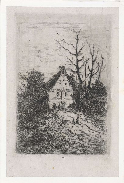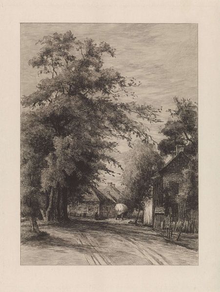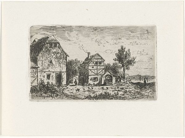 Editor: This is "Spelende kinderen nabij dorpshuizen" by Arnoud Schaepkens, made sometime between 1831 and 1904, using drawing, print and etching techniques, mainly with pencil. It feels quite bucolic and perhaps a little sentimental. What can you tell me about this scene? Curator: This work, though seemingly a simple genre scene, speaks volumes about 19th-century societal structures. Notice how the children are positioned in the foreground, seemingly free to play. What socio-economic narratives do you think the artist may be subtly highlighting, or perhaps even obscuring? Editor: Hmm, it looks like everyday life for children near village homes. The attention seems to be focused on the activities, making it all appear very ordinary and even joyful. Curator: Exactly, and that’s the entry point. But consider this: who benefits from such portrayals of seemingly carefree rural life? How might this idealized depiction relate to larger conversations about land ownership, labor, and even childhood in a rapidly industrializing world? Were all children afforded this kind of leisure? Editor: I see what you mean. Perhaps it normalizes and obscures the realities of child labor and class differences in that era. This drawing almost romanticizes the lives of children. Curator: Precisely! And how might Schaepkens's own positionality have informed his perspective? Was he perhaps part of the land-owning class? Understanding his background helps us decode these layers of representation. What did you notice about the marks of the drawing and print? Editor: I was focused on the children playing. I appreciate how a historical view makes this art piece about childhood both familiar and a symbol of 19th-century life. Curator: Absolutely! Now you're seeing how art can reflect, and even shape, social and political discourse.