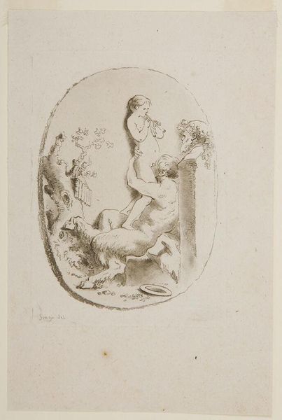 Curator: This is Francesco Rosaspina's "Saint Cecilia." The piece invites contemplation, doesn't it? Its sepia tones evoke a sense of timelessness. Editor: It's all very brown, isn't it? How did the artist achieve this effect, and what material did he use? It seems less about the subject and more about the means. Curator: Indeed. The artist utilized a sophisticated etching technique to create that very effect. Consider the symbolism: Saint Cecilia at her organ, attended by angels. Editor: But the tools of her trade are there, discarded at her feet, with the lute and violin. What does it say about the social standing of instrument makers versus performers, then and now? Curator: Perhaps Rosaspina asks us to consider the transformative power of music itself. Editor: Or the business of it! Curator: Well, whatever it may be, there are certainly some interesting thoughts to come away with. Editor: Yes, material worth as well as spiritual!