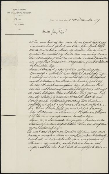 This is a copy of a decree by Emma, Queen Regent of the Netherlands, created in March 1892 by August Allebé. It speaks to the politics of art education in the Netherlands at the end of the 19th century, and what constituted the most relevant artistic training. The letter is addressed to the artist Piet Mondrian, communicating the Queen’s desire for him to relocate to Amsterdam or the Hague. This was so that he could either teach at the State Academy of Fine Arts or advise the Academy of Visual Arts. This decree brings up several points: the power wielded by the monarchy over the arts, and the gendered nature of that power. It also poses questions about what it meant for Mondrian, who would develop an abstract visual language, to be summoned by the Queen. Allebé’s copy reflects the complexities of art’s relationship to the state, and the artist’s negotiations within such structures. It reminds us that even the most radical artistic visions often emerge from very specific social and political contexts.