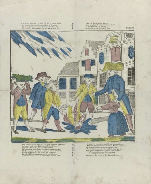 This undated etching by J. Robyn, now held at the Rijksmuseum, offers a glimpse into New Year's traditions. The print captures a group of figures, possibly children, going door to door, likely caroling or offering New Year's wishes for money. This scene reflects the socio-economic realities of the time, highlighting the role of children in supplementing family income through seasonal customs. The text accompanying the image suggests a critical perspective on these practices, questioning whether they are driven by genuine goodwill or merely by the pursuit of financial gain. It also references figures like 'Chele Tryn' and 'Klopper', hinting at established roles within these New Year's traditions. The artist captures a sense of lived experience and the emotional undercurrents of these customs, inviting viewers to consider the complex interplay of tradition, economic necessity, and social expectations. Robyn prompts us to reflect on the ways in which societal structures shape individual experiences and cultural practices.