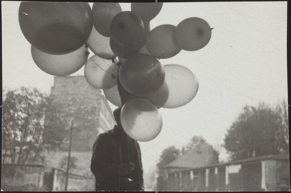 This is a photograph by Robert Frank, likely taken in Paris at some point in the mid-20th century. It’s a black and white image, so the tonal range becomes really important – it’s how Frank creates a sense of depth and mood. Look at how the light catches the balloons. Some are dark, almost swallowing the light, while others reflect it back, creating these ghostly highlights. The balloons themselves almost seem to float away from the vendor. Frank's known for his street photography, capturing these fleeting, everyday moments. Here the balloons are tethered to the seller, but the scene still feels so loose. The slightly grainy texture and the way the light kind of fogs the background creates a dreamlike atmosphere. I am reminded of Garry Winogrand, another great street photographer. Both captured these fleeting moments of humanity. With Frank, though, there's always this undercurrent of melancholy. Nothing is ever quite resolved. You're left with a feeling, an impression. That’s what makes his work so powerful.