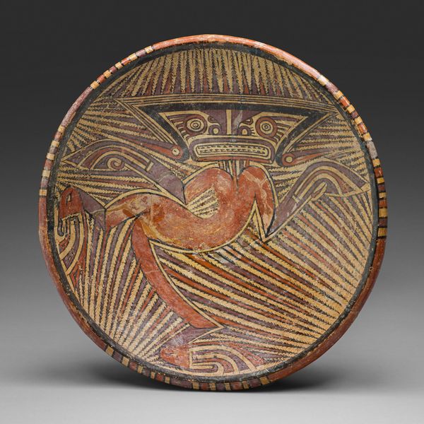 This polychrome bowl, depicting a serpent with feathers, was created in Veracruz during the Classic period. Its earthenware composition speaks to the ingenuity of the time. Consider how the clay was sourced and prepared – a labor-intensive process. Skilled hands would have carefully molded the bowl and its tripod supports before it was fired in an open kiln, a technique demanding precise control over heat and atmosphere. The painted decoration is also notable. The serpent's intricate patterning suggests the use of fine brushes and a steady hand. It is a testament to the artisan's skill and the cultural significance of the serpent, likely a deity, in Veracruz society. Appreciate this bowl not only as a vessel, but also as a window into the social and symbolic world of its makers. By understanding the materials and processes involved, we gain a richer appreciation for this remarkable artifact.