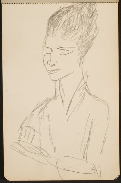 Curator: Sa Nogueira created this ink and watercolor drawing entitled “Figura feminina”, or “Female Figure.” We don't have a specific date for this work, but her consistent interest in figuration and portraiture is evident. Editor: Well, my first thought is: that yellow is so interesting. Not quite sunny, more like… a fading sunbeam, almost melancholic. It's a really captivating use of color to convey a specific mood. Curator: It's striking how she manages to be so direct with line work. The visible brushstrokes remind me a bit of sketchbooks and studies, while still presenting a poised female figure. This adds to the sense of immediacy; there’s a feeling of capturing a fleeting moment. How does that connect for you to modernism? Editor: Modernism’s interest in capturing psychological realities perhaps, but with a critical eye. Nogueira gives us something very personal, rather than an archetype. The gaze is very strong, almost confrontational, yet undermined by a slight… softness, an insecurity in the sketched and watery elements. There's definitely a dialogue happening about identity, visibility, and vulnerability. Also, the simplification of form is in line with many modernist strategies. Curator: Right. There’s a conscious reduction that moves us beyond straightforward representation and perhaps towards a sort of stylized self-examination. It's this tension between raw exposure and subtle concealment that's just riveting, don't you think? The way Nogueira handles line and watercolor creates a very emotionally complex image. Editor: Absolutely, the sketch-like quality isn't just about aesthetics. In art schools and the broader artistic world, life drawing and portraiture served specific roles, helping to shape conceptions of class and gender and individual character. These things are never neutral. The use of what looks like a quick medium for these images of the modern woman hints at that changing dynamic. Curator: Considering that history really deepens my appreciation of the choices made here, seeing them not just as technique, but part of how someone navigates portraying identity. Editor: Exactly. Art is always made inside webs of meaning, reflecting, rejecting and remixing existing narratives. Curator: So while the image might at first seem a straightforward depiction, there's much more going on, once we unpack those complexities. Editor: Indeed. That kind of dialogue enriches my understanding of art's place in society.