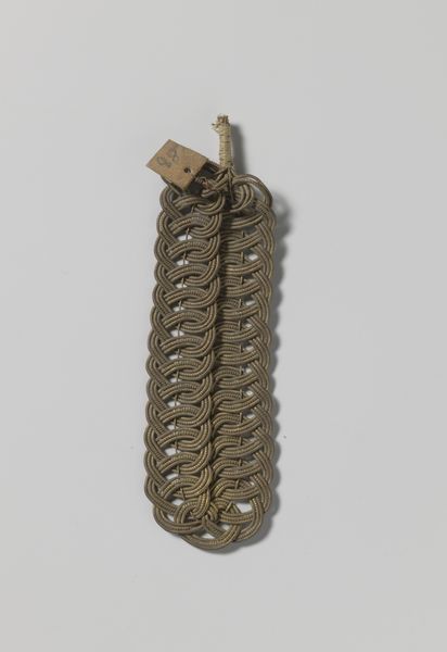 Editor: Here we have "Dragon voor officier der stedelijke schutterij," made around 1830 or 1831 by an anonymous artist, and seemingly crafted from textile and fiber art. I’m immediately struck by the… practicality of it, almost like a really fancy utility item. What can you tell me about this piece? Curator: The means of production speak volumes here. It's a mixed media piece, a textile object signifying civic authority in the 19th century. This isn't "high art" in the traditional sense, but that's precisely where its interest lies. Consider the labor invested, the artisanal skill required. Editor: So, it's not just about how it looks, but also about who made it, and what skills they needed? Curator: Precisely! Look closely at the weaving and the braiding; the way the different textures play against each other. What does that imply about the materials? Is that simply ornamental? How might the production of that type of material speak to the social or cultural context of the time? Editor: I suppose it points towards the craftsmanship and the availability of specific materials during that era... almost an early form of branding or social distinction based on materiality? Curator: Indeed. Consumption and display were intertwined. By engaging with these textiles we might ask, how were class distinctions reinforced through dress and social display? Where was the textile produced? Who wore it? What sort of person produced it? And finally, how did materiality express power? Editor: So much more to consider than just a decorative textile. I'm starting to see how studying the materials and their origins can unlock a whole history! Curator: Absolutely. Objects such as this were the result of multiple inputs. By exploring the hows and whys of production we start to perceive a greater relationship to cultural meaning.
