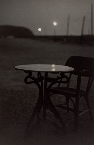 Editor: We are looking at "Checkered World," a gelatin-silver print by Imre Kinszki, dating back to before 1933. The first thing that strikes me is how geometric it feels – the interplay of light and shadow creates this amazing grid. What do you see in this piece? Curator: It sings to me of summer afternoons, you know? That hazy light filtered through a trellis... Kinszki's caught not just a scene, but a feeling. I see order in the chaos, almost a meditation on how light transforms ordinary objects into extraordinary patterns. Do you get a sense of stillness, or is it more dynamic for you? Editor: Definitely stillness. Like a moment suspended in time. Is there any historical context that sheds light on this? Curator: Absolutely. Kinszki was part of a vibrant avant-garde movement in Hungary. They were playing with form, experimenting with new ways of seeing the world, questioning reality and our understanding of it. And of course, the shadows themselves speak volumes. Are they trapping the table and chairs, or liberating them with abstract playfulness? Perhaps it is open to our own interpretation of perspective and confinement. Editor: That’s a fascinating idea. I hadn't thought about it that way, it makes me want to experience it. Curator: Yes. The "Checkered World" transforms something banal to evoke a sense of mystery and curiosity that the familiar will allow new ideas. It reminds me to appreciate the abstract beauty woven into our surroundings. What will you take from Kinszki? Editor: This made me see beauty that hides just behind light and shade and also what other possibilities lie in shadows. I see through photography a different world now. Curator: Me too. Let’s go get some gelato to digest that light.