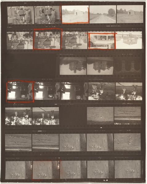 Robert Frank's "Florida 24" is a gelatin silver print, a humble yet powerful medium that defined much of 20th-century photography. The work presents strips of negatives laid out on a black backing sheet: a kind of intimate glimpse into Frank's editing process. The inherent qualities of the photographic process – the contrast between light and shadow, the graininess of the film – contribute to the image's raw, documentary feel. Frank was known for capturing unvarnished glimpses of American life, and his choice of materials and methods reflects this. He was not interested in the slick perfection of advertising; instead, the rough-and-ready aesthetic perfectly suited his project of social critique. The use of photography is tied to wider social issues of representation, politics, and the consumption of images. It emphasizes the labor involved in capturing and curating these fleeting moments. By understanding Frank's material choices and working methods, we gain insight into the social and cultural significance of his work, challenging traditional distinctions between art and social commentary.