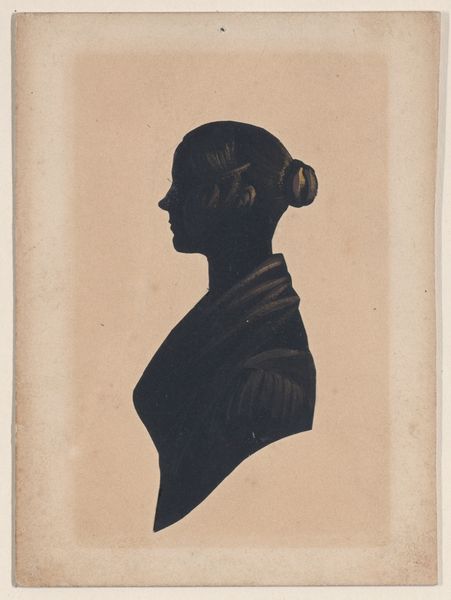 This paper silhouette of a woman facing left was made by Rufus K. Cummings sometime in the 1800s. It’s a simple piece, cut from paper, and mounted on a backing sheet. But its simplicity belies its cultural significance. Silhouettes like this were an inexpensive way to have your portrait made. In an era before photography was widely accessible, it provided access to a sort of likeness for the masses, using basic techniques, and at relatively low cost. The artist likely used a tool to trace around the shadow of the sitter's profile, and then carefully cut along the tracing lines to create the silhouette. The starkness of the black paper against the white background emphasizes the contours of the face and hairstyle. The lack of detail forces the viewer to focus on the overall shape and form, rather than intricate features. This small portrait speaks volumes about the democratization of representation, using the humblest of materials and methods to make portraiture accessible to a wider audience. It blurs the boundaries between art and craft, elevating a modest technique to a poignant form of expression.