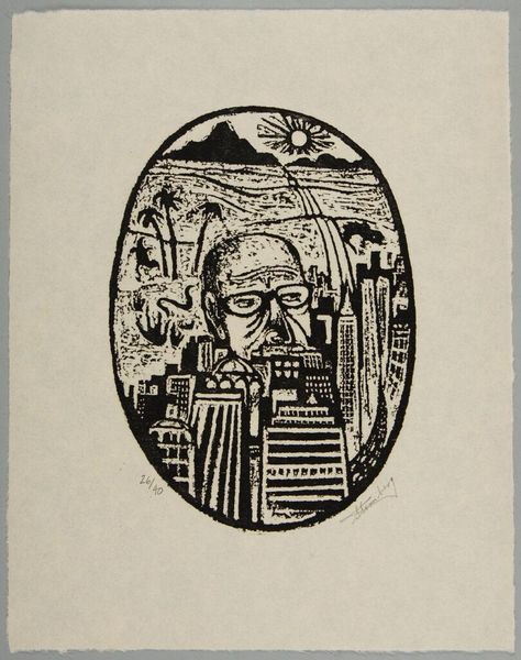 Samuel Jessurun de Mesquita made this self-portrait with glasses and goatee in a woodcut, a medium that revels in stark contrasts. Look how the white lines carve out his face from the black ground! It's like he's building himself up, piece by piece, with each cut into the wood. The texture in the hair and beard is so tactile, so graphic, you can almost feel the gouge of the knife. And the glasses! They sit there, framing his eyes, turning them into these curious, observing circles. It's hard to ignore the way the white of the page pushes forward, creating a presence out of absence. This feels like a cousin to some of the German Expressionist prints I've seen. Artists like Kirchner, who weren't afraid to use the woodcut's intensity to convey something raw and unfiltered. In Mesquita's case, he shows us not just a face, but a process of self-construction, a dance between the maker and the made.
