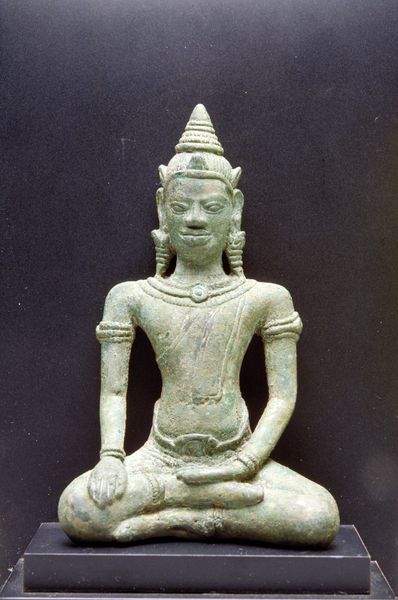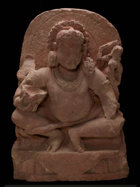 Editor: Take a look at this sculpture of "Naga-Enthroned Buddha," dating back to the 13th or 14th century. It's made of stone, and it just radiates serenity. What can you tell me about this piece, from your perspective? Curator: Well, viewed through a historical lens, this sculpture reveals quite a bit about the power dynamics within its culture. Representations of the Buddha, especially those with elaborate iconographies like this Naga, or serpent, reveal how religious and political authority often intertwined. Note the details -- where was it placed? How did it function within the community? It served not only as a focus of worship, but as a visible symbol of power and protection within a potentially unstable sociopolitical climate. Editor: So the Naga isn't just a decorative element, but something deeply meaningful? Curator: Precisely. The serpent Naga shelters and protects the Buddha. This is not mere visual narrative; it is also a declaration of legitimacy. Think of the patrons who commissioned this work—they would likely have wanted to broadcast not only piety, but also strength. Did specific dynasties associate themselves with Naga imagery? Understanding those links gives us clues to interpreting the statue's function in society. Editor: That makes so much sense. So, artworks from the past were really shaping opinions and sending clear messages. It is way more complex than just beautiful artistry. Curator: Absolutely. And understanding the historical context enhances our appreciation for the piece today. What new appreciation will it stimulate when its imagery and status change again?
