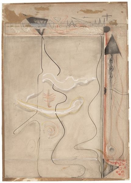 Curator: Rothko’s Untitled watercolor drawing, circa 1944, presents us with a series of biomorphic forms in a largely muted palette, punctuated by bright red splatters. Editor: My first impression is disquiet. The muted tones coupled with the aggressive red spatters create a visceral contrast. It looks almost like a scientific diagram gone wrong, like an experiment splattered on the page. Curator: Indeed. The shapes invite various symbolic interpretations: the stacked ovoid form, for example, could be interpreted as an abstracted human figure, burdened or perhaps reaching upwards. Notice how the internal lines suggest inner turmoil or movement within these forms. Editor: From a material perspective, it is fascinating to see Rothko using watercolor and drawing at this stage. There's a directness and immediacy to these materials, almost a sense of trying to quickly capture fleeting thoughts before they disappear. Curator: The seeming randomness of the red marks feels intentional— perhaps alluding to blood, trauma, or even passion. These scattered forms contribute to a sense of disrupted equilibrium, creating tension within the composition. It breaks the visual harmony. Editor: The sparseness is equally striking. The visible paper becomes a vital part of the composition, underscoring the material support, the "ground" from which these floating shapes emerge. There's something very modern about leaving that unworked space as a crucial visual element. It acknowledges the physical limits. Curator: Considering Rothko's trajectory towards pure color field painting, it's intriguing to view this work. Are the biomorphic forms the chrysalis for his later rectangles? Editor: It feels incomplete to me, more of an idea than a finished piece, but seeing that bare paper, I do feel the beginnings of a shift toward emphasizing surface and material. A crucial stage. Curator: Ultimately, Rothko presents a raw glimpse into the artist's evolving vision and unique artistic development. A testament to transformation and the power of symbolic language. Editor: A material investigation, that perhaps unconsciously clears the space, both visually and conceptually, for the artist's future endeavors. Fascinating to trace it.