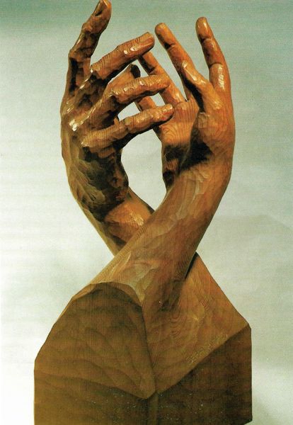 Louise Bourgeois created this bronze sculpture, called The Welcoming Hands. The composition centres around a pair of hands cupped together as if to receive or offer something precious. The texture is rich with detail, capturing the lines and creases of skin, which invite a sense of intimacy. Bourgeois often used the body as a vessel to explore psychological states and personal experiences. Here, the hands might be interpreted as a gesture of offering or nurturing, a theme prevalent throughout Bourgeois's work. The sculpture engages with semiotics: the hands act as a symbol, open to multiple interpretations. The interplay between the solid bronze and the implied space within the hands creates a dynamic tension, blurring the lines between presence and absence, inviting us to contemplate the complexities of human connection. This ambiguity reinforces the idea that art's meanings are fluid, shaped by individual interpretation and cultural context.
